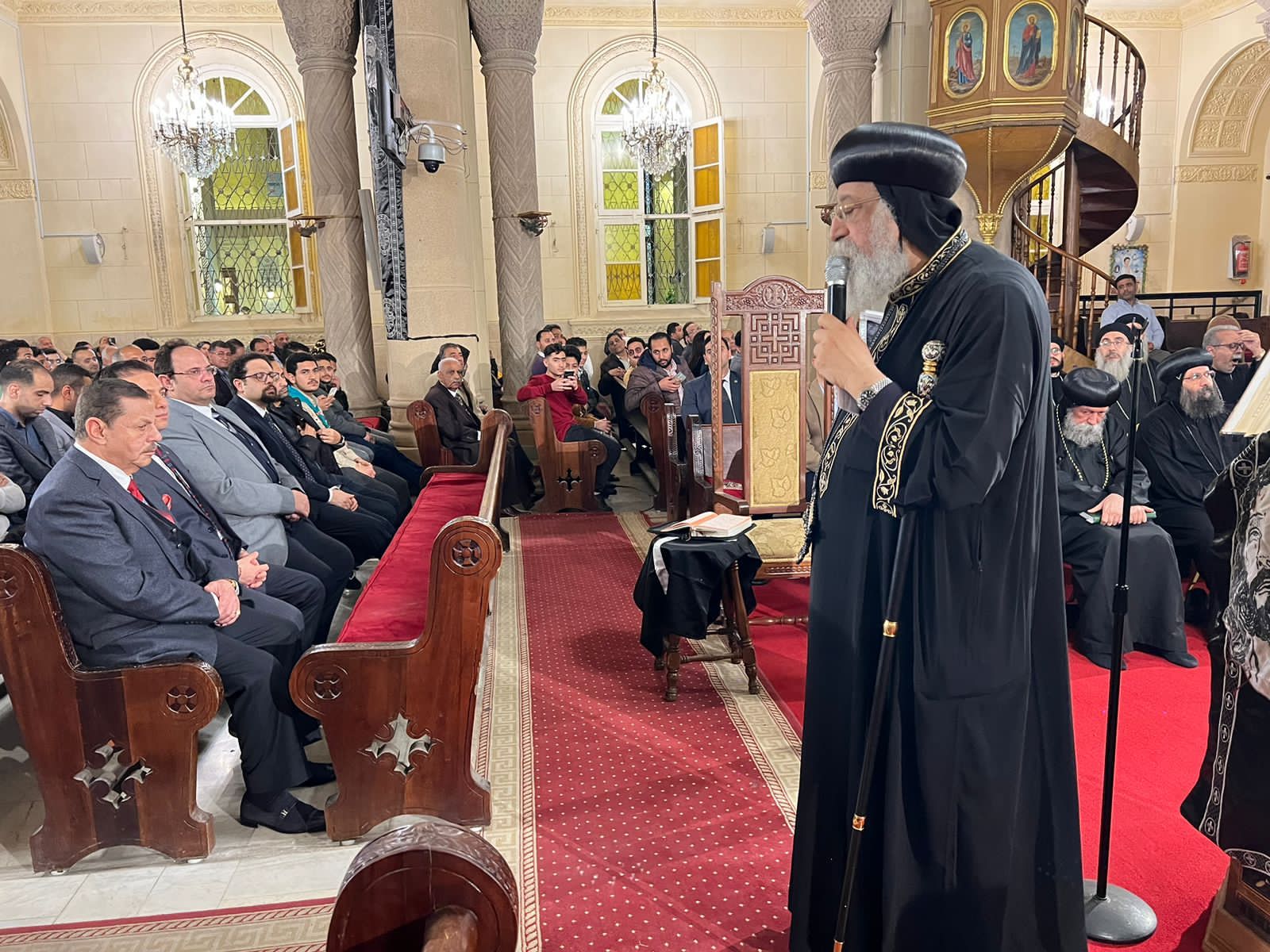 ترأس قداسة البابا تواضروس الثاني بابا الإسكندرية وبطريرك الكرازة المرقسية،مساء اليوم الاثنين صلوات ليلة الثلاثاء من البصخة المقدسة بالكاتدرائية المرقسية بالإسكندرية.