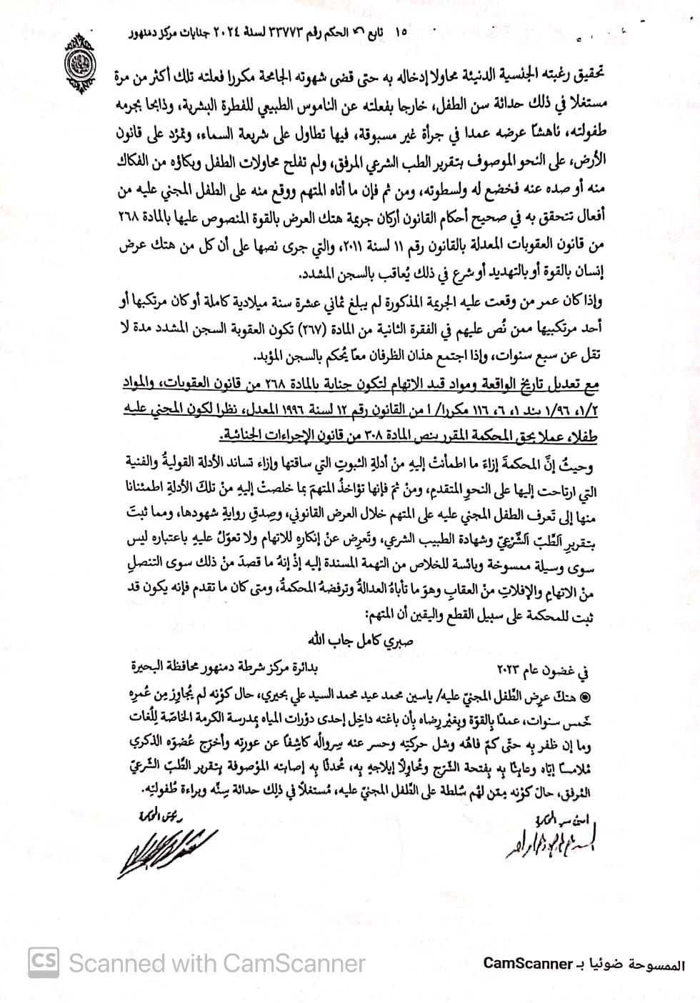 حيثيات الحكم علي المتهم في قضية الطفل ياسين بالبحيرة