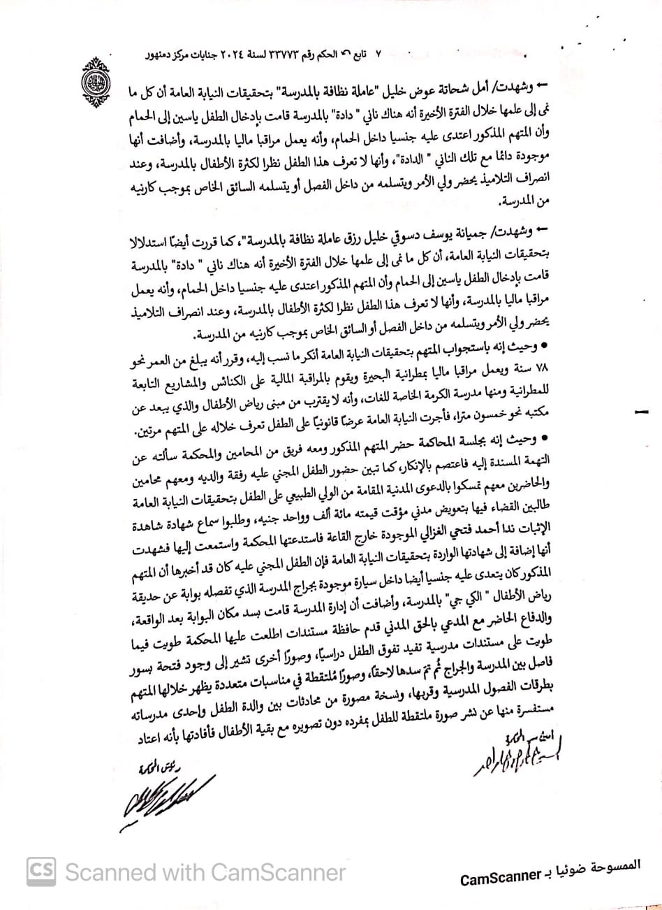 حيث أودعت الدائرة الأولى جنايات دمنهور، حيثيات حكمها في القضية 33773 لسنة 2024 جنايات مركز دمنهور ضد المتهم “ص.ك، بهتك عرض طفل دمنهور، الذي تتهم أسرته موظفًا في مدرسته بمحافظة البحيرة بهتك عرضه، وصدر حكم (أول درجة) ضد المتهم بالسجن المؤبد.