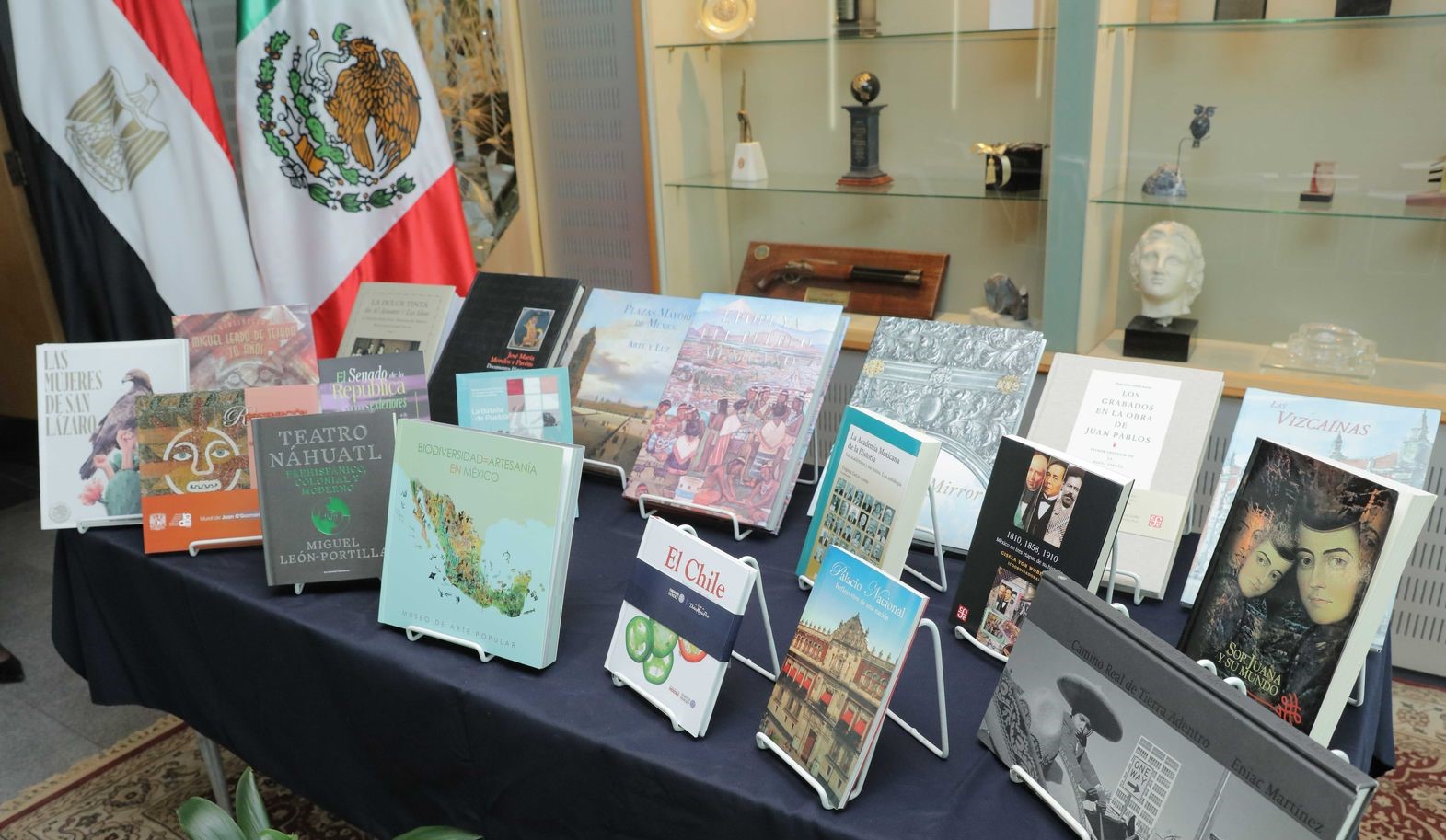 رافقها خلال الزيارة السيد هيكتور اورتيجا؛ وزير مفوض ونائب رئيس البعثة، والسيد ادواردو فراجوسو؛ الملحق الثقافي لسفارة المكسيك بالقاهرة.