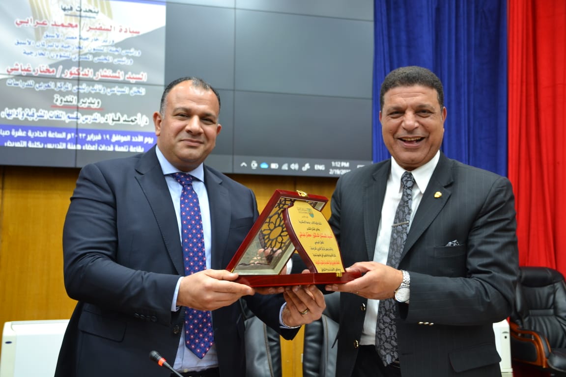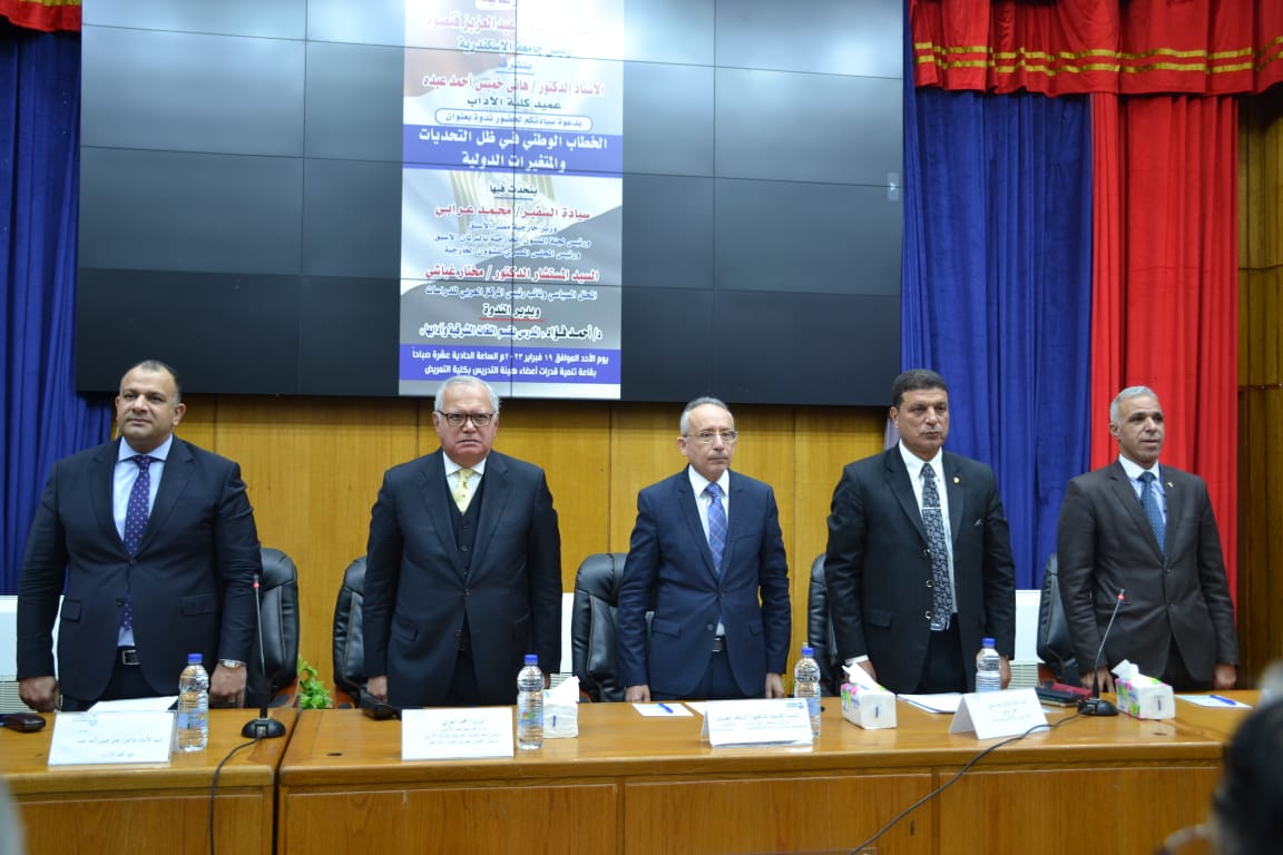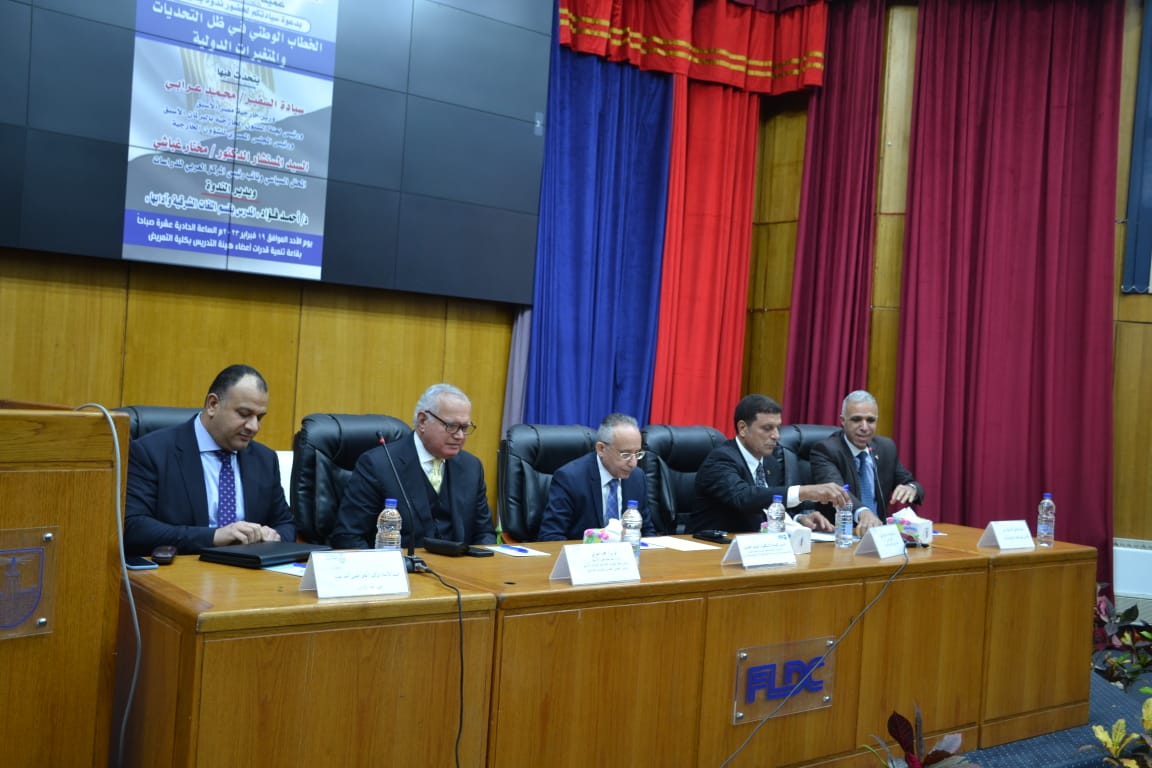 والتى عقدت تحت عنوان ” الخطاب الوطنى فى ظل التحديات و المتغيرات الدولية “، شارك فى إلقائها كل من السفير محمد العرابي وزير الخارجية الأسبق ورئيس لجنة الشئون الخارجية بمجلس النواب الأسبق ورئيس المجلس المصرى للشؤون الخارجية، والمستشار الدكتور مختار غباشى المحلل السياسي ونائب رئيس المركز العربى للدراسات، وذلك بقاعة المؤتمرات بكلية التمريض بحضور عمداء ووكلاء الكليات وأعضاء هيئة التدريس وطلاب الجامعة.