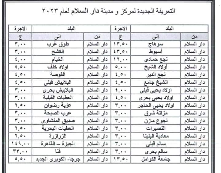 أعلنت محافظة سوهاج، اليوم، أسعار التعريفة الجديدة لنقل الركاب بجميع مراكز المحافظة المختلفة، وذلك لسيارات نقل الركاب الداخلي أو الربط مع المحافظات والأقاليم، بزيادة لا