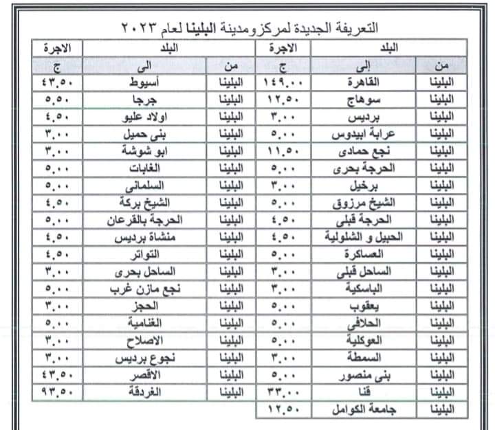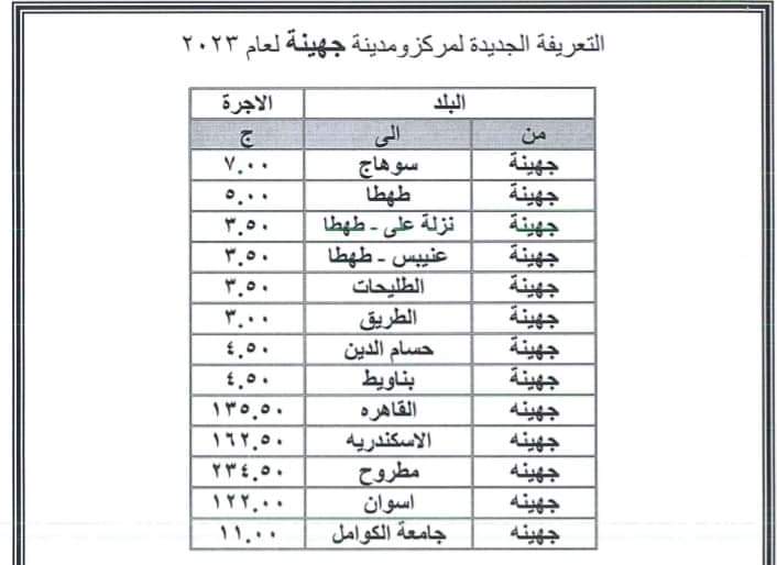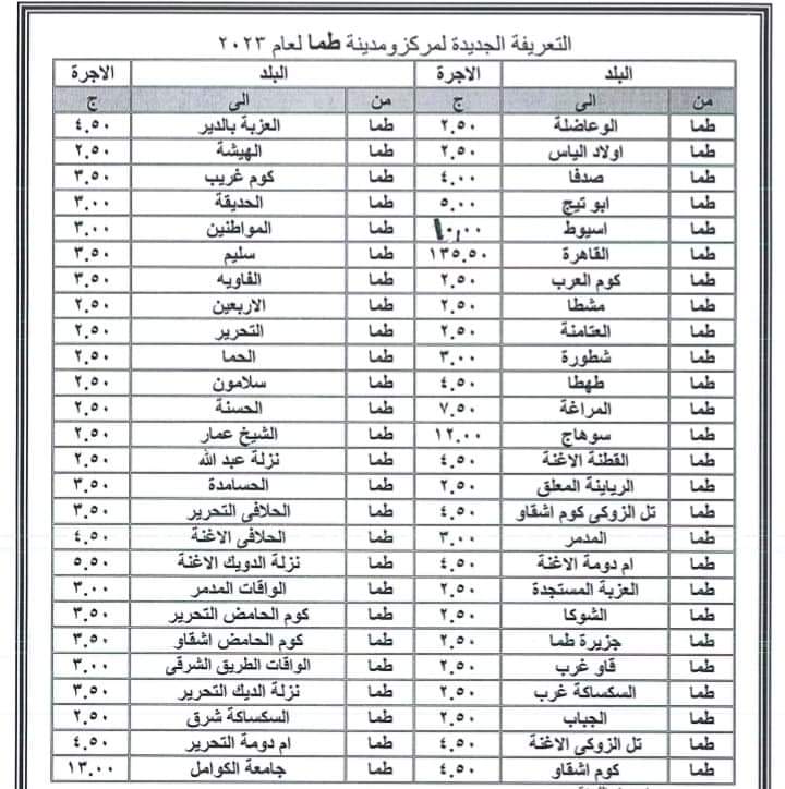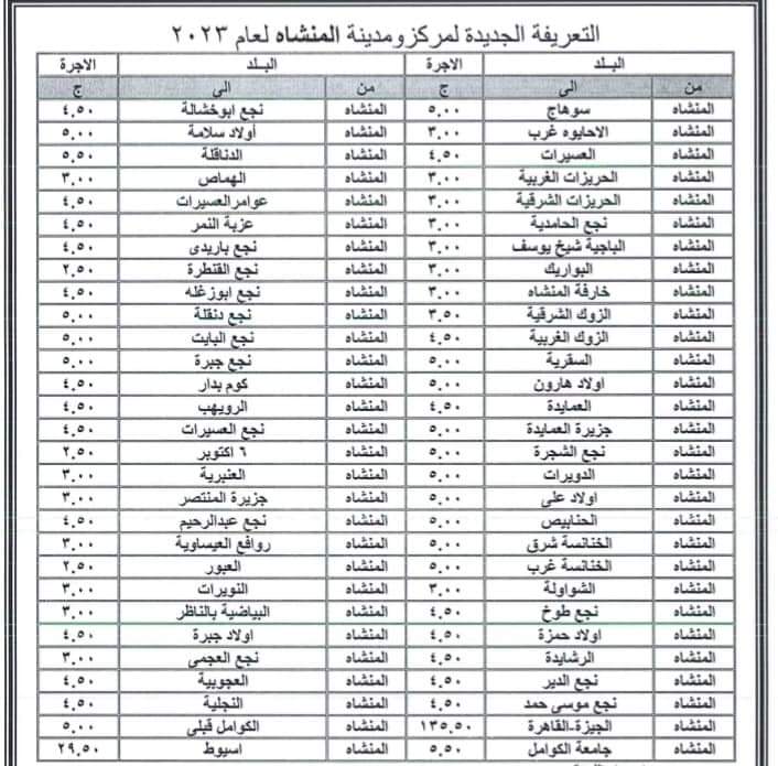 محافظة سوهاج تعلن التعريفة الجديدة لنقل الركاب