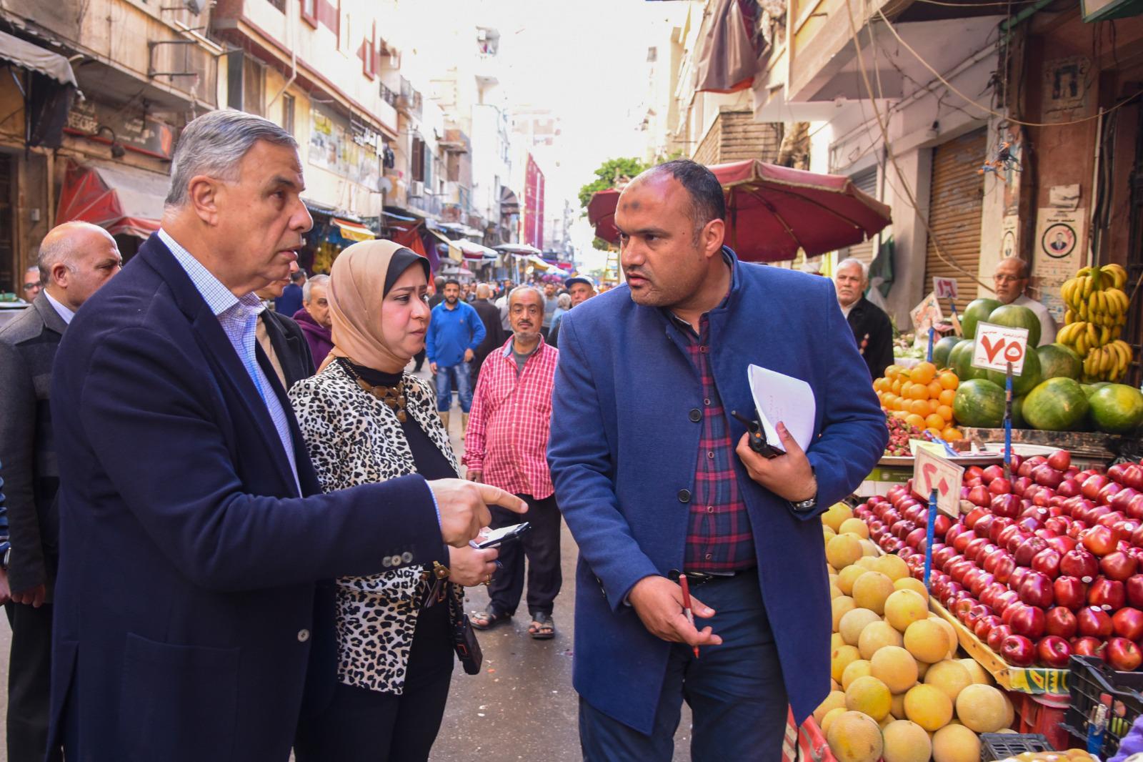 محافظ الإسكندرية يأمر بتحرير محاضر وتشميع عدد من المحال المخالفة داخل سوق زنانيرى