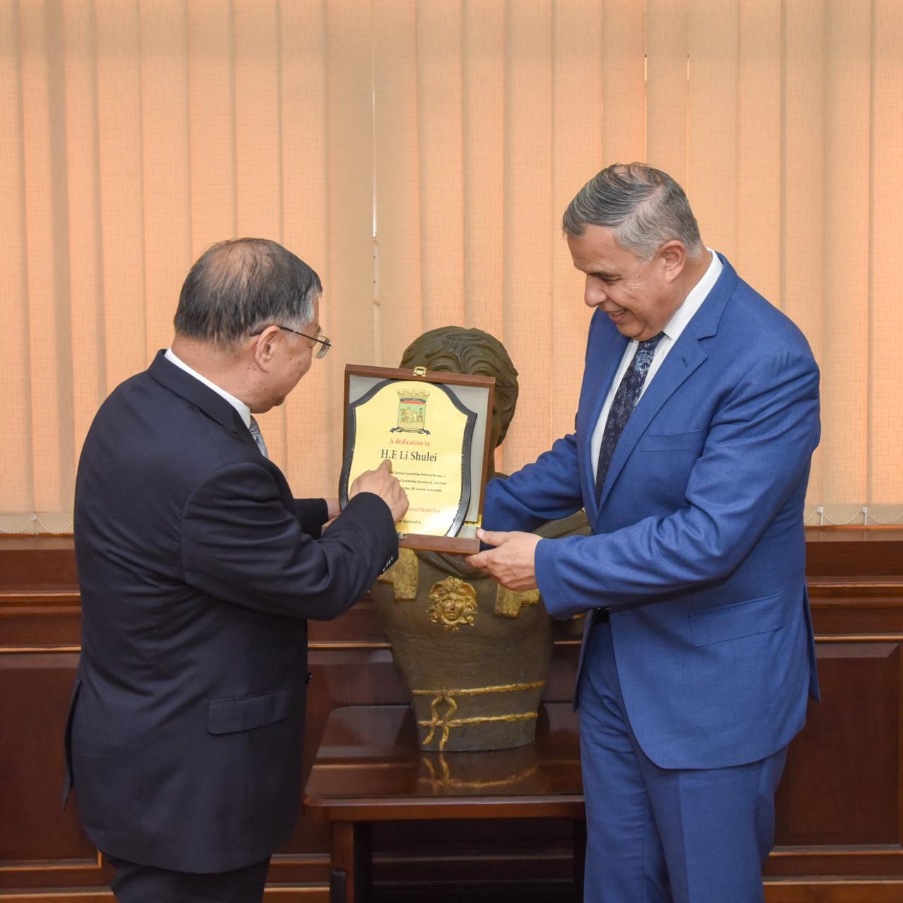 استقبل الفريق أحمد خالد حسن سعيد محافظ الإسكندرية، بمقر ديوان عام المحافظة، السيد لي شولي عضو المكتب السياسي للجنة المركزية للحزب الشيوعي الصيني –