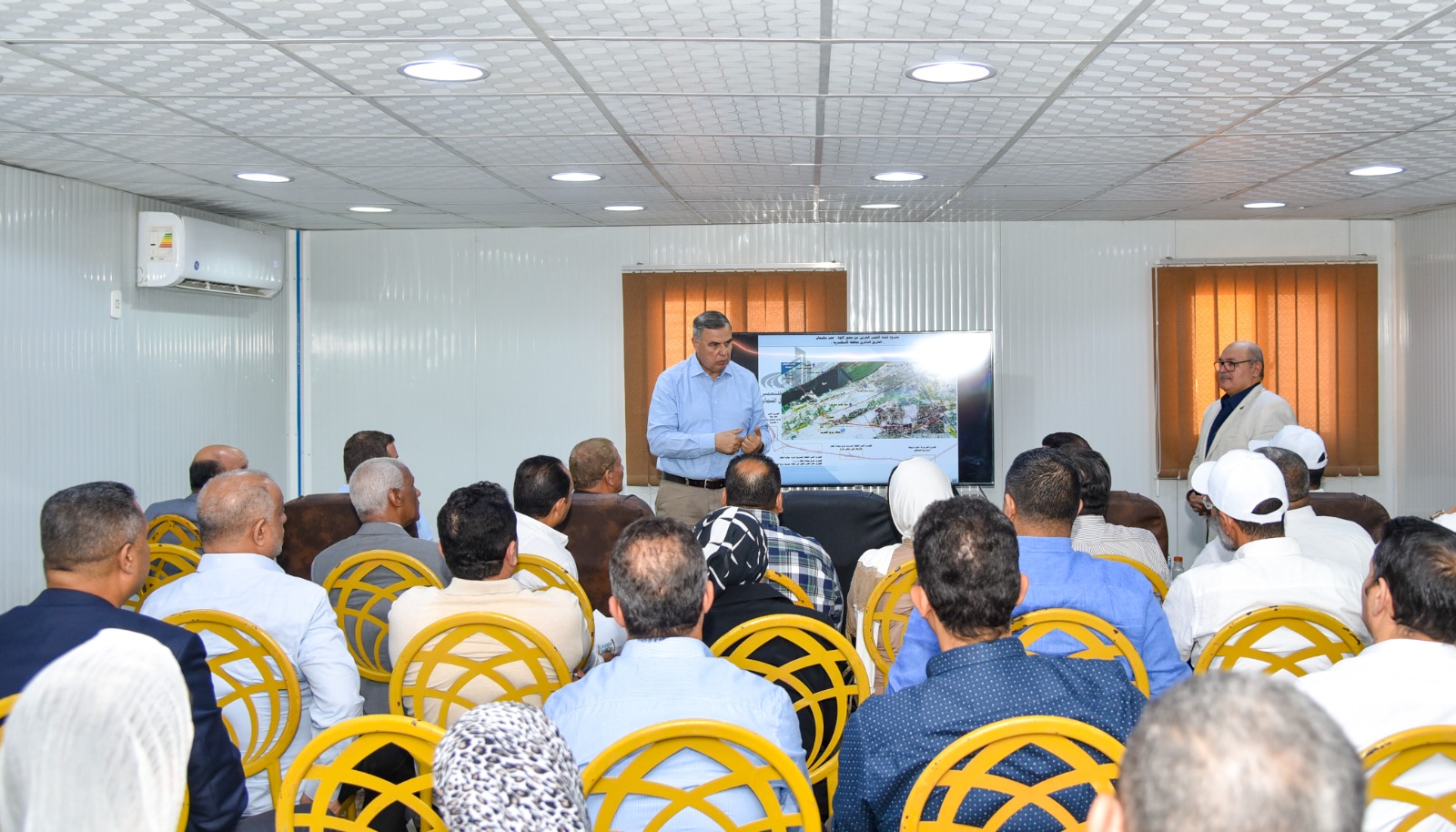 حيث بدأت الجولة بتفقد نموذج للموقف التنفيذي لقطاع القوس الغربي وعرض لمشروع القوس الشرقي لمحور اللواء عمر سليمان،