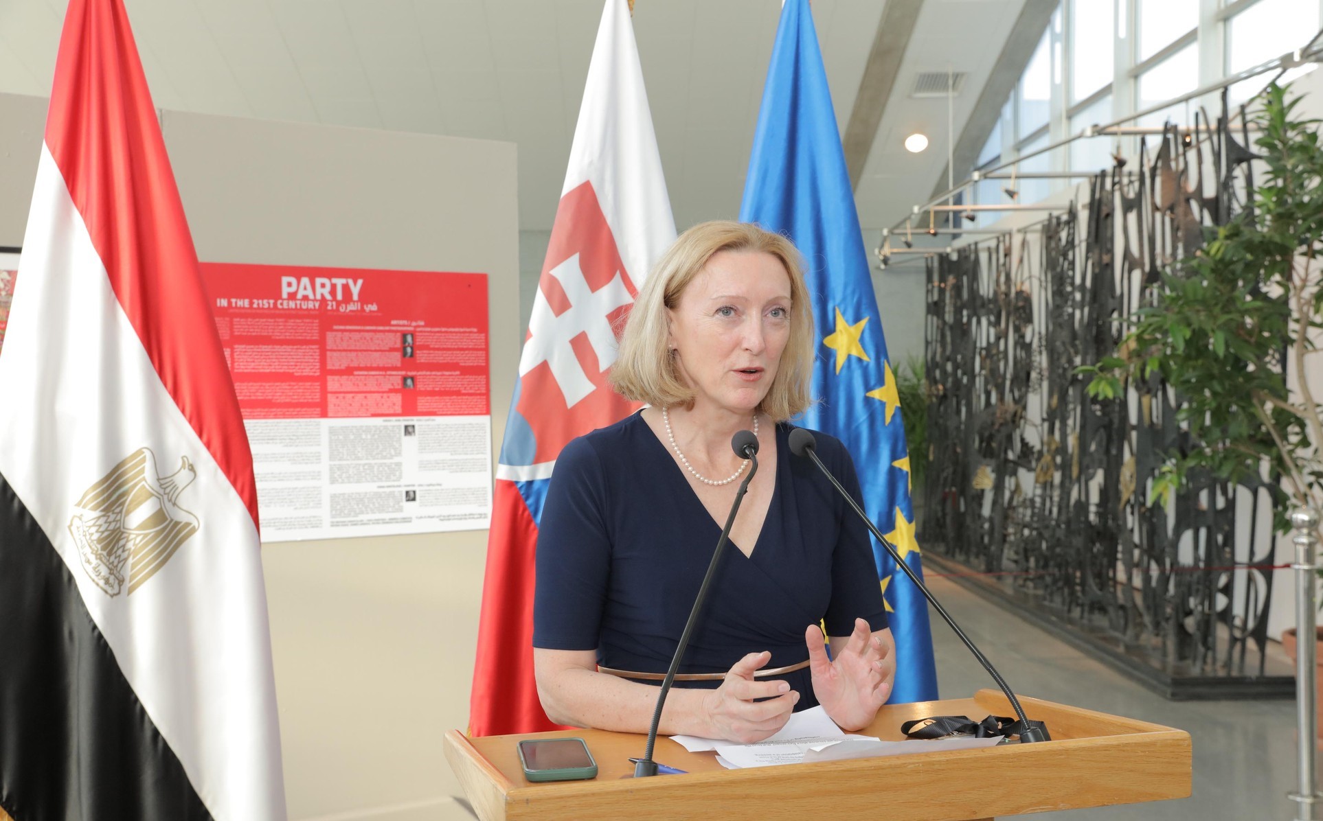 والسيدة أنجلينا آيخهورست؛ رئيسة الوفد الأوروبي في مصر، السيد ساشو بودلسنيك؛ سفير سلوفينيا في مصر،