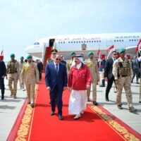 كما تباحث الزعيمان حول سبل تعزيز العمل المشترك لاحتواء التوتر الراهن وتكريس مفهوم الأمن العربي الجماعي. من جانبه، رحب جلالة الملك بزيارة السيد الرئيس، معتبرًا أنها تعكس عمق العلاقات الأخوية بين البلدين،