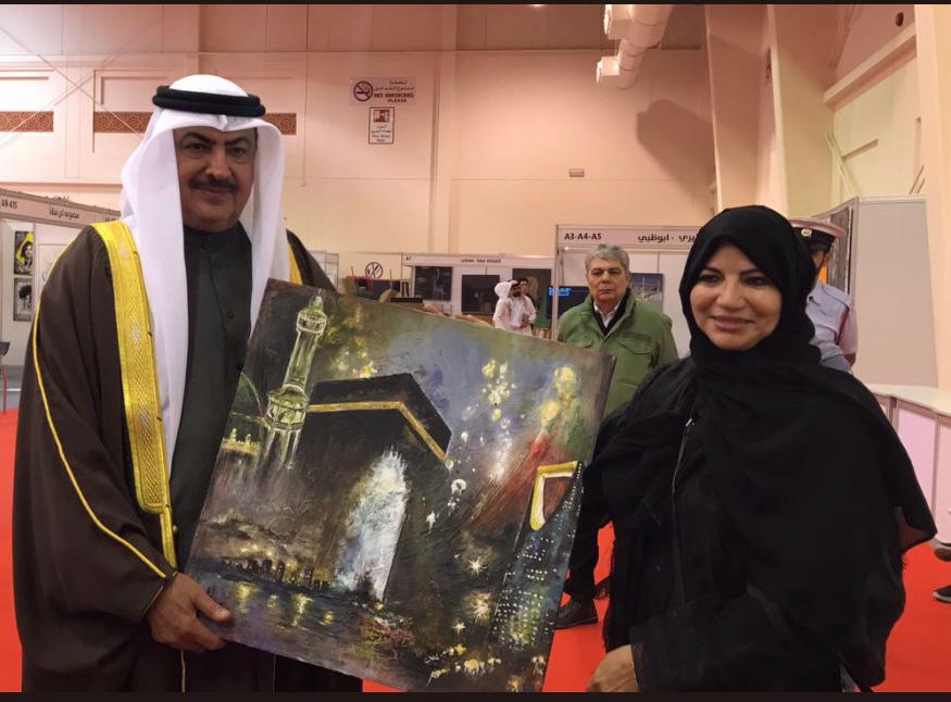 ا.د/محمد يوسف ،وكانت من نصيب سعادة الشيخ راشد بن خليفة آل خليفة الرئيس الفخري لجمعية البحرين للفن التشكيلي أهدته إياها خالتي ا/سلوى حجر تأسياً بقول نبينا الكريم (تهادوا تحابوا) في المعرض الدولي للفن التشكيلي والتصوير بالبحرين عام ٢٠١٨م