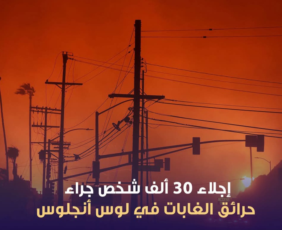 حدث حريق كبير فى لوس انجلوس وبايدن يلغى رحلته لايطاليا واعلنت السلطات فى لوس انجلوس 10 اشخاص على الاقل لقوا مصرعهم فى حرايق غابات ضخمة اندلعت فجاءة بمشارف المدينة ولا تزال خارجة عن السيطرة وتتمدد بسرعة كبيرة محذرة بالارتفاع