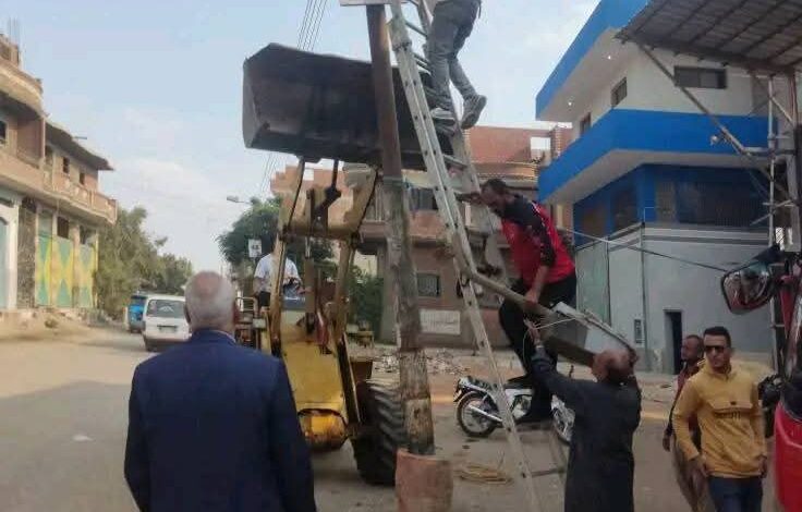 وتم ازاله العمود المائل وزع عمود اخر وذلك في حضور السيد /عيد عزت -رئيس الوحدة المحليه بتمده