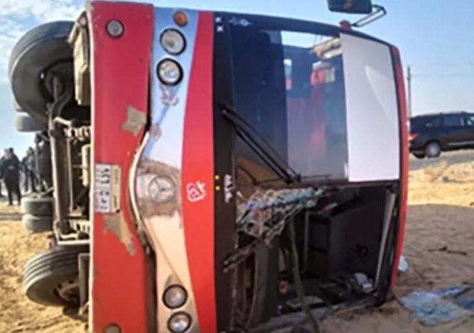 إصابة 34 في انقلاب أتوبيس بالإسماعيلية والدفع بـ26 سيارة إسعاف