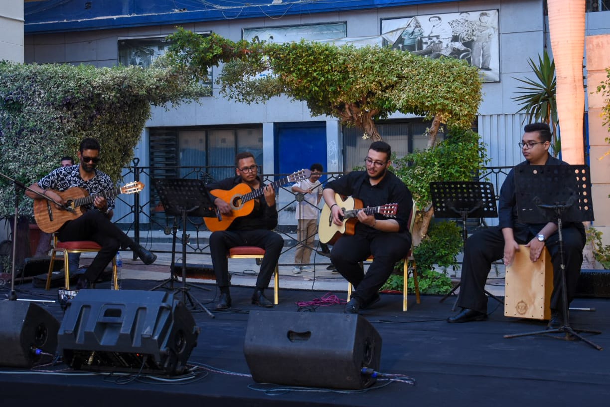 وكانت الساحة الخارجية للمسرح قد شهدت فقرات فنية لطلاب فصل الجيتار تدريب الدكتور احمد عبد الرحمن التابع لمركز تنمية المواهب تضمنت مختارات من الفلكلور الاسبانى وعدد من الحان الموسيقى العربية الشهيرة .