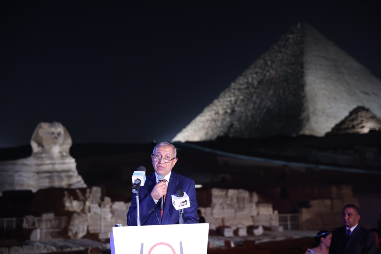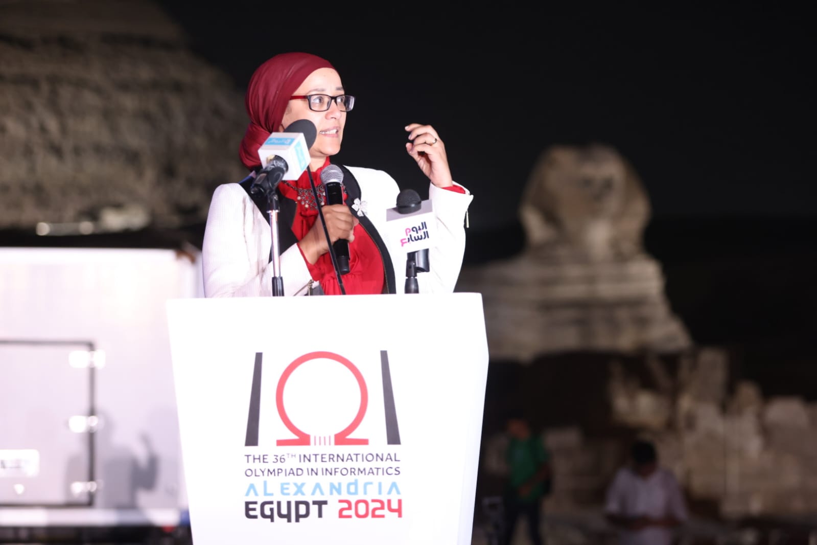شهد حفل الختام الذي أقيم مساء اليوم تحت سفح الأهرامات، حضور كل من الأستاذ الدكتور/ إبراهيم صابر خليل محافظ القاهرة، الأستاذة الدكتورة/ هبة صالح رئيس معهد تكنولوجيا المعلومات نائباً عن وزير الاتصالات وتكنولوجيا المعلومات ،الدكتور/ أيمن أبو عمر، رئيس الإدارة المركزية لشؤون الدعوة نائبا عن وزير الأوقاف الأستاذ الدكتور / إسماعيل عبد الغفار إسماعيل فرج رئيس الأكاديمية العربية للعلوم والتكنولوجيا والنقل البحري ، والبروفيسور/ بنيامين بيرتون رئيس الأولمبياد الدولي للمعلوماتية ، وانج ايمانج نائب رئيس معهد الأبحاث الاستراتيجية بشركة هواوي ، الدكتورة لمياء زايد رئيس المركز الثقافي القومي ـ دار الأوبرا المصرية ـ ، أعضاء السلك الدبلوماسي والقنصلي بجمهورية مصر العربية.