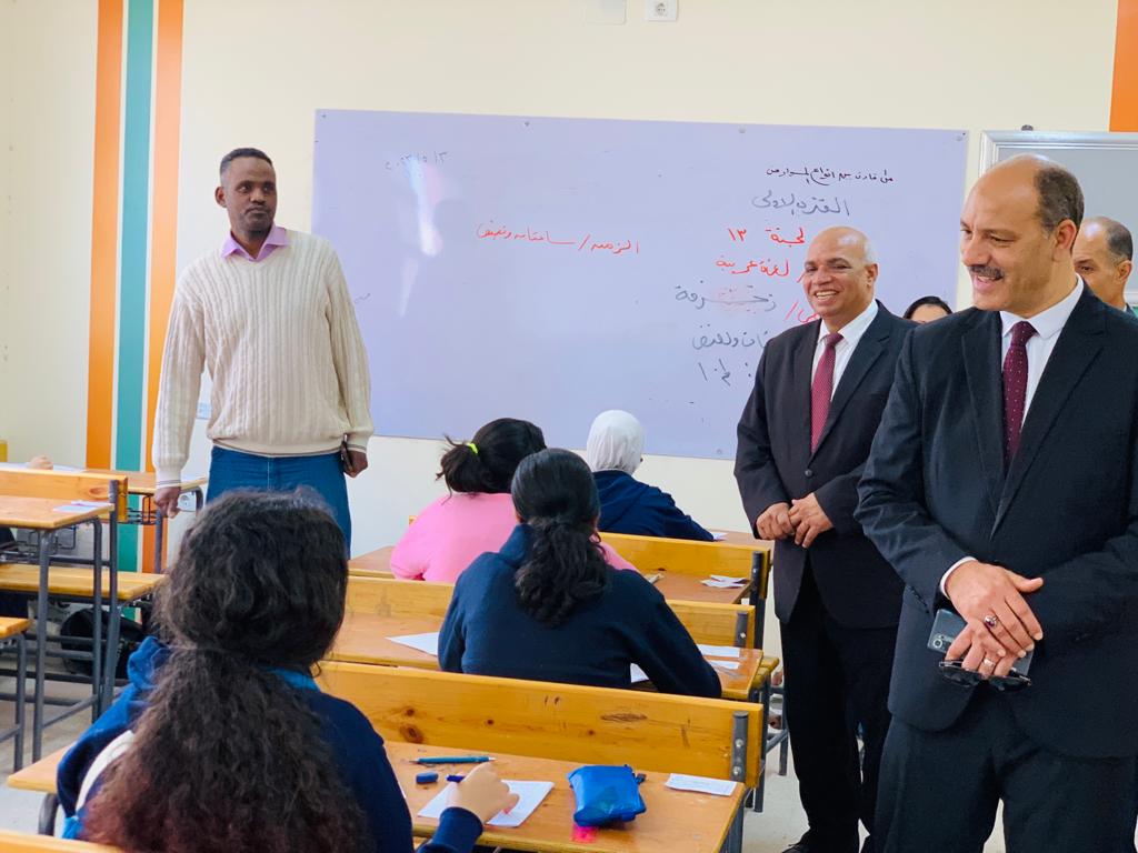 وتفقد لجان الصف الثاني الثانوي لمتابعة امتحان مادة اللغة العربية إلكترونيًّا على أجهزة الحاسب اللوحي ( التابلت ) ، كما تفقد امتحانات التعليم الفني بمدرسة محمد رجب الثانوية الصناعية بنات ،