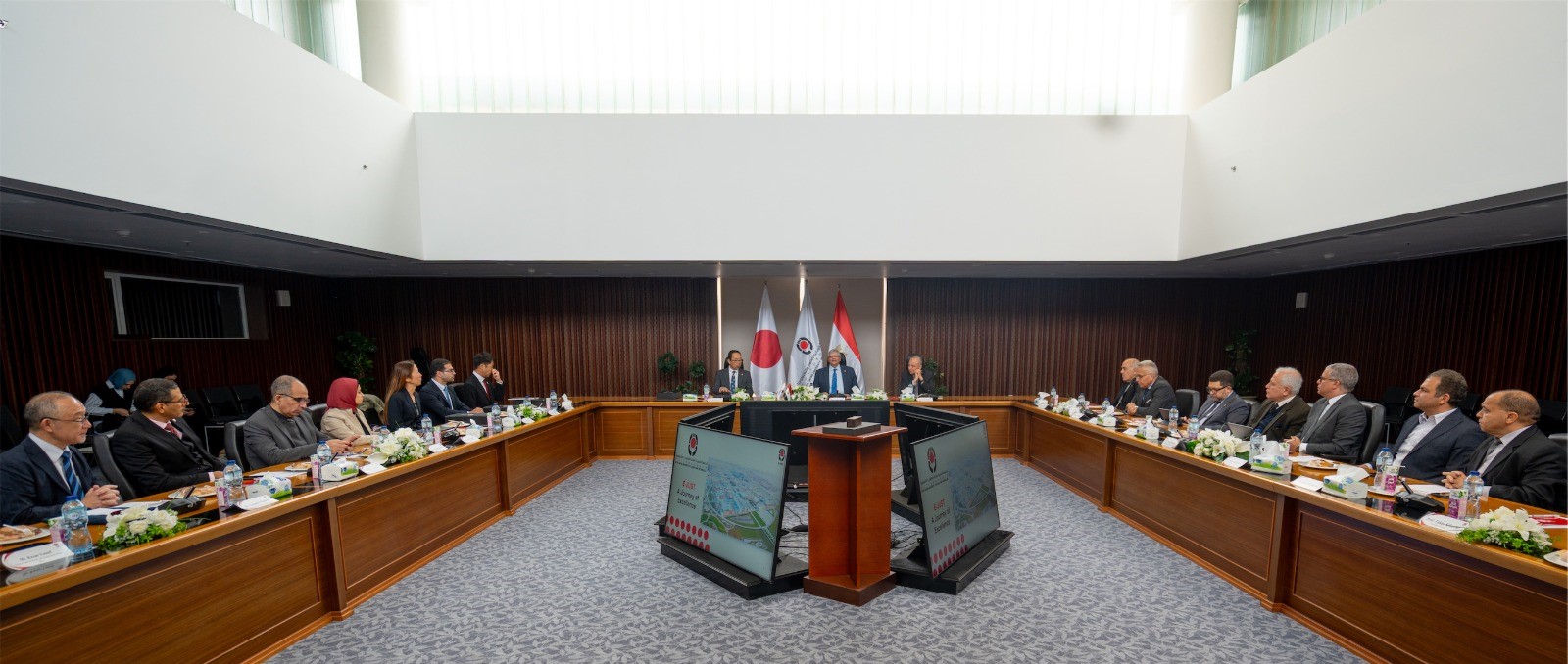 وخلال الزيارة، اطلع الوفد الياباني على عرض تقديمي حول رؤية الجامعة وبرامجها الأكاديمية ونموذج التعليم المصري–الياباني، الذي يركز على التميز البحثي وربط العملية التعليمية بمتطلبات سوق العمل، وذلك بمشاركة عدد من عمداء الكليات.
