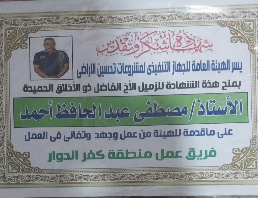 م. ابراهيم شعيب مدير منطقة كفر الدوار لجهاز تحسين الاراضي..