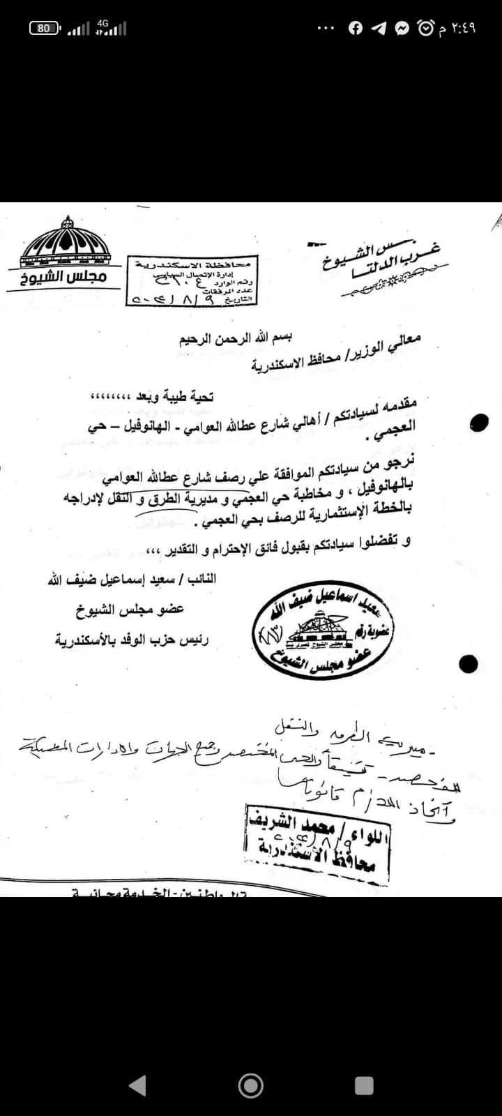 بناءاً على الطلب المقدم من النائب / سعيد اسماعيل ضيف الله ، عضو مجلس الشيوخ ، و رئيس حزب الوفد بالإسكندرية .