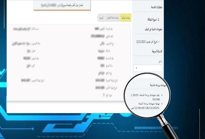 ويحصل المواطن على شهادة براءة الذمة إلكترونياً فور سداد المخالفات من أي قناة إلكترونية، مما يتيح إلغاء طلب الشهادة الورقية تيسيراً على المواطنين وتسريع الإجراءات.