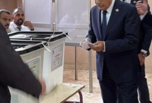 السيسي حبيب الملايين المصريين رافعين أعلام مصر في استقبال الرئيس السيسي قبل الادلاء بصوته في انتخابات النواب