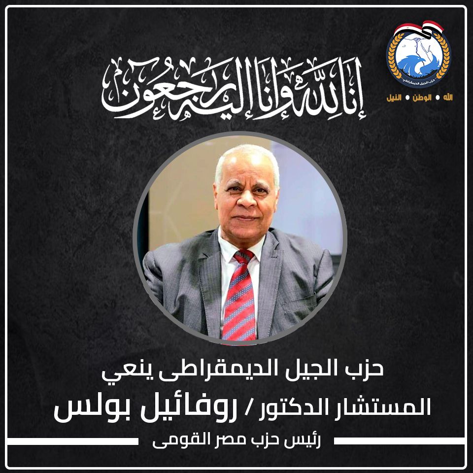 نعى ناجى الشهابي رئيس حزب الجيل بقلب يعصره الألم والحزن الاخ والزميل والصديق والحبيب المستشار الدكتور روفائيل بولس المحامى بالنقض ورئيس حزب مصر القومى بعد رحلة طويلة فى الحياة العامة والحياة السياسية والحزبية كان فيها نموذج للوطنى المخلص الملتزم بقضايا الوطن القومية والأمة العربية ..تابع الشهابي ، لقد زاملت الوطنى الكبير الراحل فى الائتلاف الوطنى للأحزاب السياسية فكان نعم الاخ والزميل المخلص الوفى االذى يسمو على المصالح الضيقة من أجل مصالح الوطن و الدولة والشعب وكان رحمه الله فقيها دستوريا وحزبيا وكان نشطا فى مواجهة الحملات التى يشنها الأعداء ضد الدولة المصرية ..