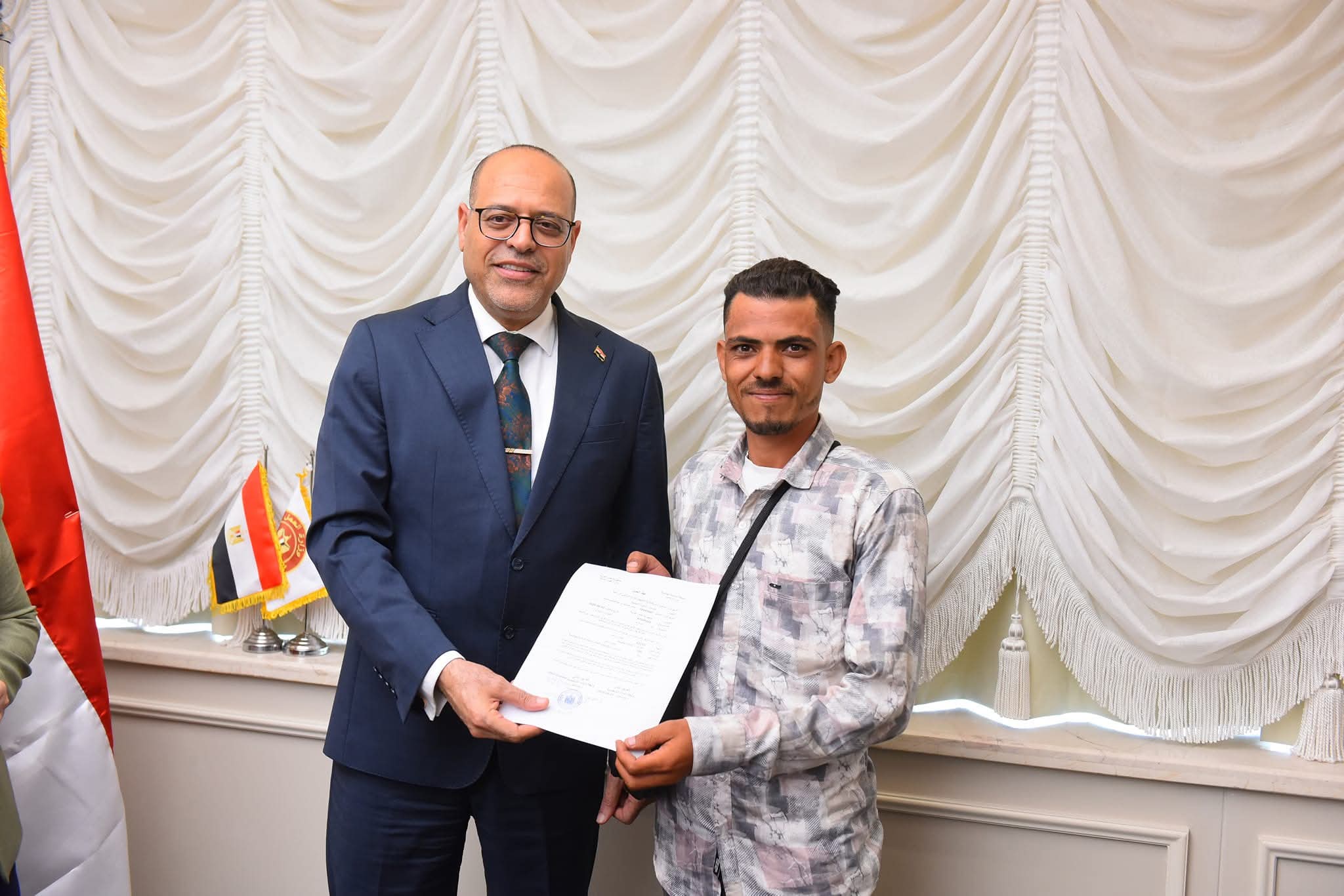 وزير العمل يُسلم عقود عمل لعمال مصريين للعمل في مجالات زراعة النخيل وتربية السمان بالأردن