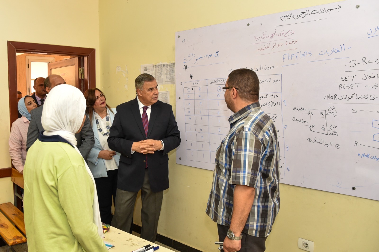 وتفقد الفريق أحمد خالد الفصول المدرسية وأدار حلقة نقاش مع طالبات الصف الثانوي تبادلوا خلالها التساؤلات لمحافظ الإسكندرية،