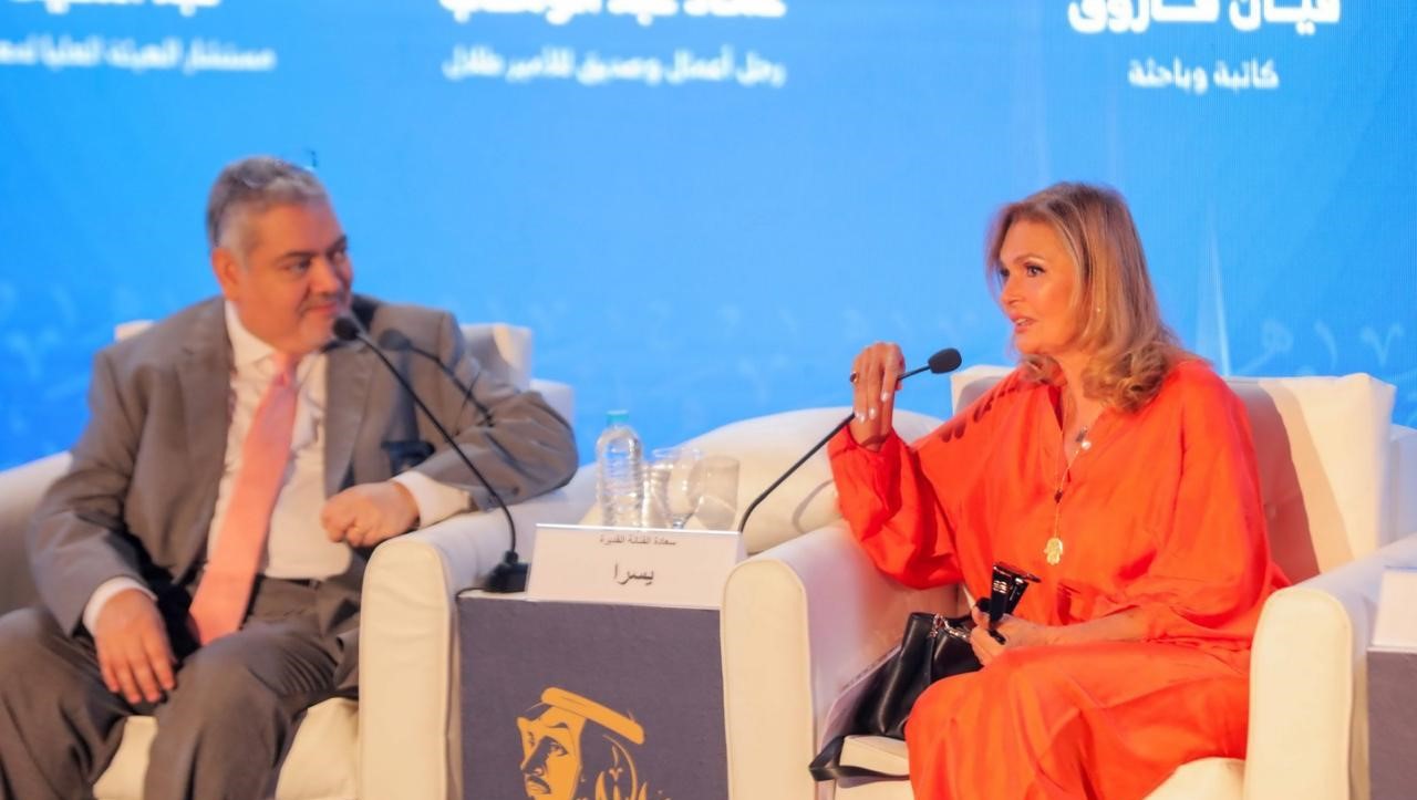 تحدث في الجلسة كل من الفنانة يسرا، الدكتورة فيان فاروق؛ كاتبة وباحثة، الدكتور عماد عبد الوهاب؛ رجل أعمال وصديق للأمير طلال،