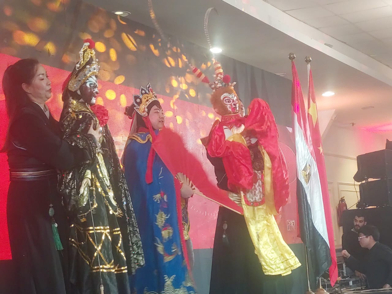 وشهد الاحتفال عددا من الفقرات الفنية الخاصة بالعيد الصيني قدمها فنانون جاءوا من الصين لإحياء الحفل منها، فقرات غنائية وموسيقية، وعرض لفن خيال الظل، إلى جانب من أبرز العادات الشعبية الصينية.