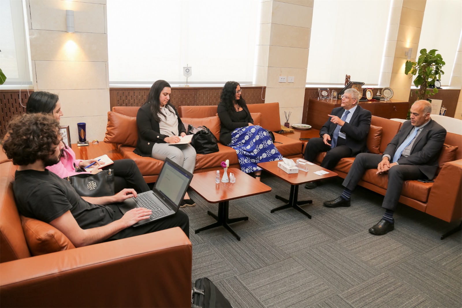 الملحق الفرنسي للشؤون العلمية والأكاديمية، السيدة نادين مكاوي نائب الملحق الفرنسي للشؤون العلمية والأكاديمية و فيكتور بارت مسؤول التعاون الأكاديمي فى حضور الدكتور سامح ندا ، نائب رئيس الجامعة للشئون التعليمية والأكاديمية