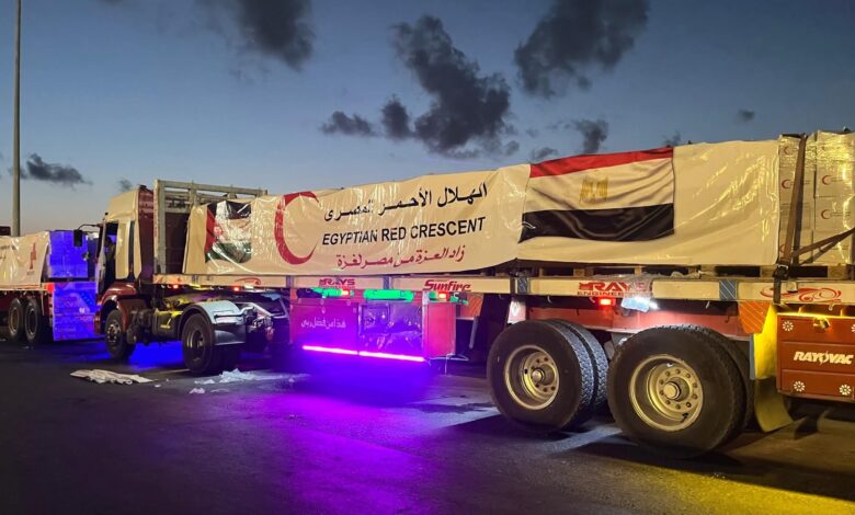 الهلال الأحمر المصري يدفع نحو 3450 طنًا من المساعدات العاجلة عبر قافلة «زاد العزة» الـ47 إلى غزة.