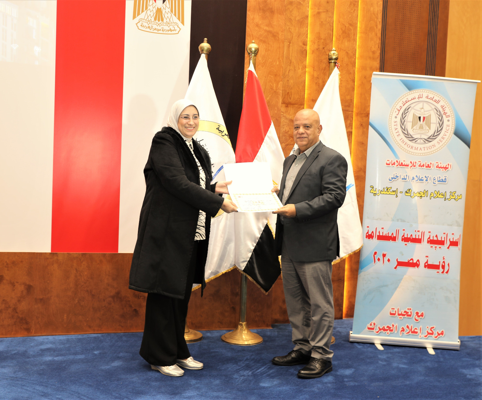 نظراً لمجهوداتها وتعاونها المستمر والدائم مع هيئة ميناء الأسكندرية إثراءاً للفكر وزيادةً للوعي كما قامت السيدة الإعلامية / أماني سريح بإلقاء كلمة تناولت أهمية دور الهيئة العامة للإستعلامات.