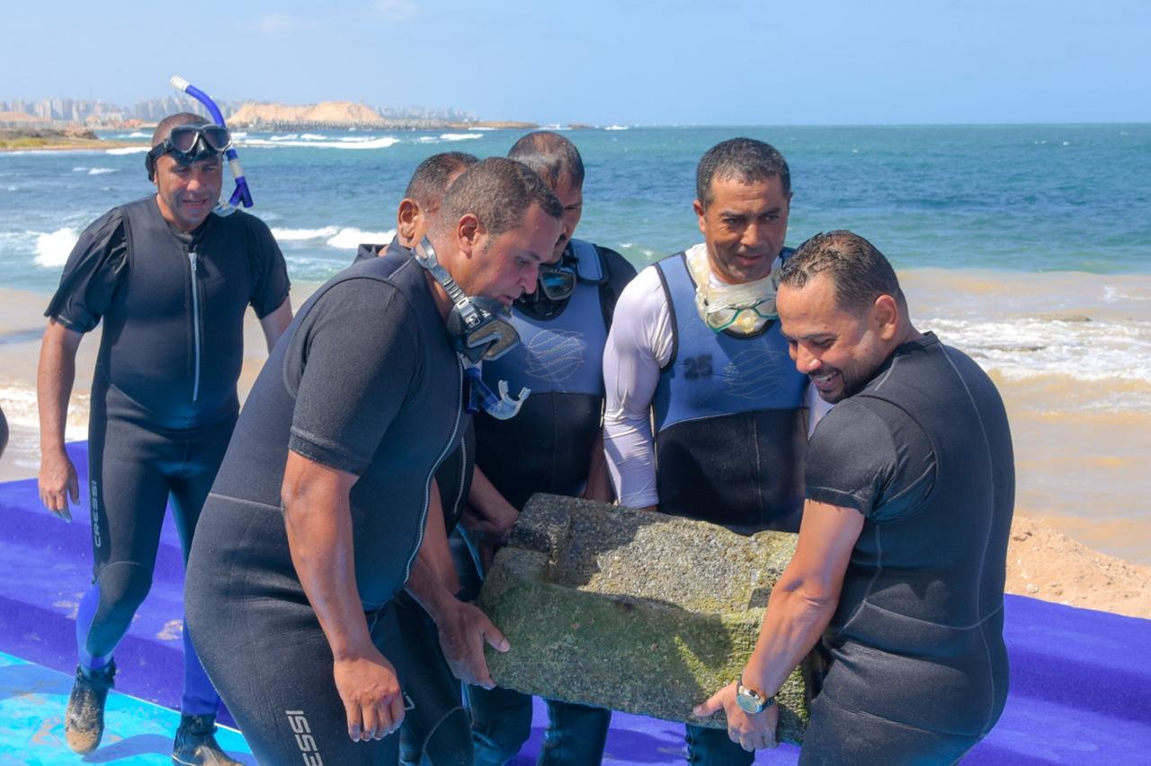 فعاليات اليوم الثاني من أنشطة التراث الثقافي المغمور بالمياه، حيث تمت عملية انتشال ثلاث قطع أثرية ضخمة من أعماق البحر المتوسط بميناء أبو قير، وسط تغطية إعلامية محلية ودولية واسعة.