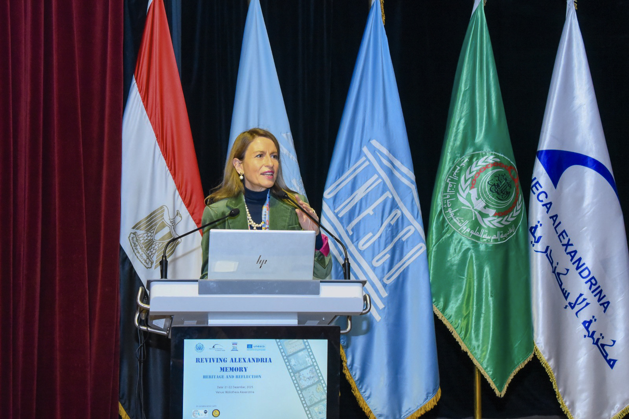وفي كلمتها، أكدت الدكتورة نوريا سانز؛ مديرة المكتب الإقليمي لليونسكو في مصر والسودان، أن مدينة الإسكندرية تتمتع بطابع فريد وإرث غني وتنوع جدير بالحفظ والإتاحة للأجيال القادمة. وأضافت أن المدينة طالما كانت نقطة تلاقي للحضارات المختلفة، وعاصمة للفكر والثقافة على مر العصور.
