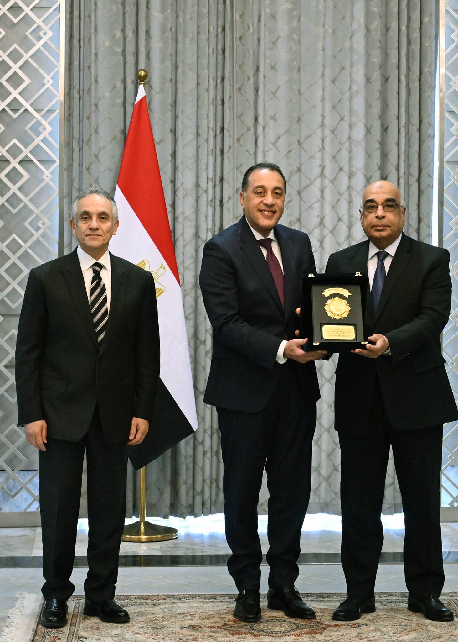 وقام رئيس مجلس الوزراء بتسليم دروع التكريم للوزراء السابقين تقديرًا لما قدموه من جهود بارزة خلال فترة توليهم المسئولية، مُجددًا تمنياته لهم جميعًا بدوام التوفيق والنجاح في مسيرتهم المهنية المقبلة.