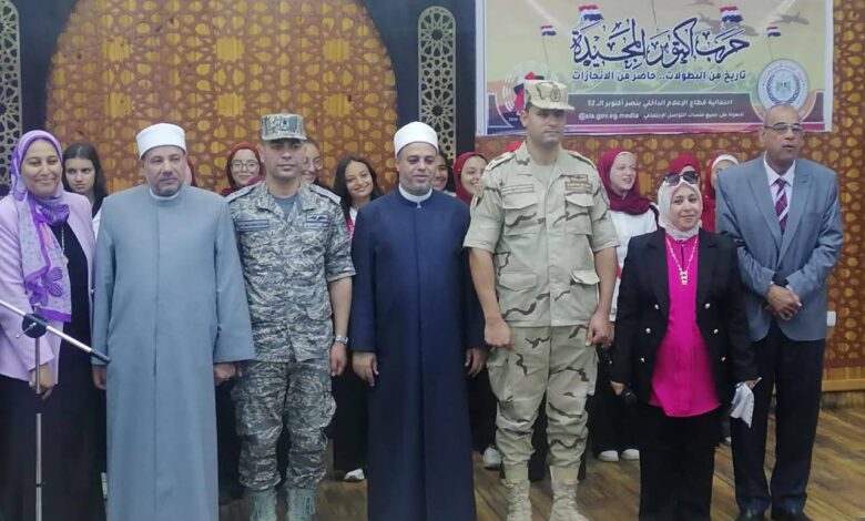 تحت عنوان ” أكتوبر معركة العلم والإيمان .. معجزة عسكرية على ضفاف القناة ” وبحضور اللواء دكتور هشام أبو النصر محافظ أسيوط نظم مجمع إعلام أسيوط لقاءا إعلاميا بالتعاون مع جامعه الأزهر بالذكري ال 52 لإنتصارات أكتوبر المجيدة ، بعنوان ” نصر أكتوبر وتعميق قيم الولاء والإنتماء عند الشباب ” وذلك بقاعة الإمام السيوطي بكلية اللغة العربية بجامعة الأزهر بأسيوط صباح يوم الأحد 12 أكتوبر 2025م من الشهر الجاري .