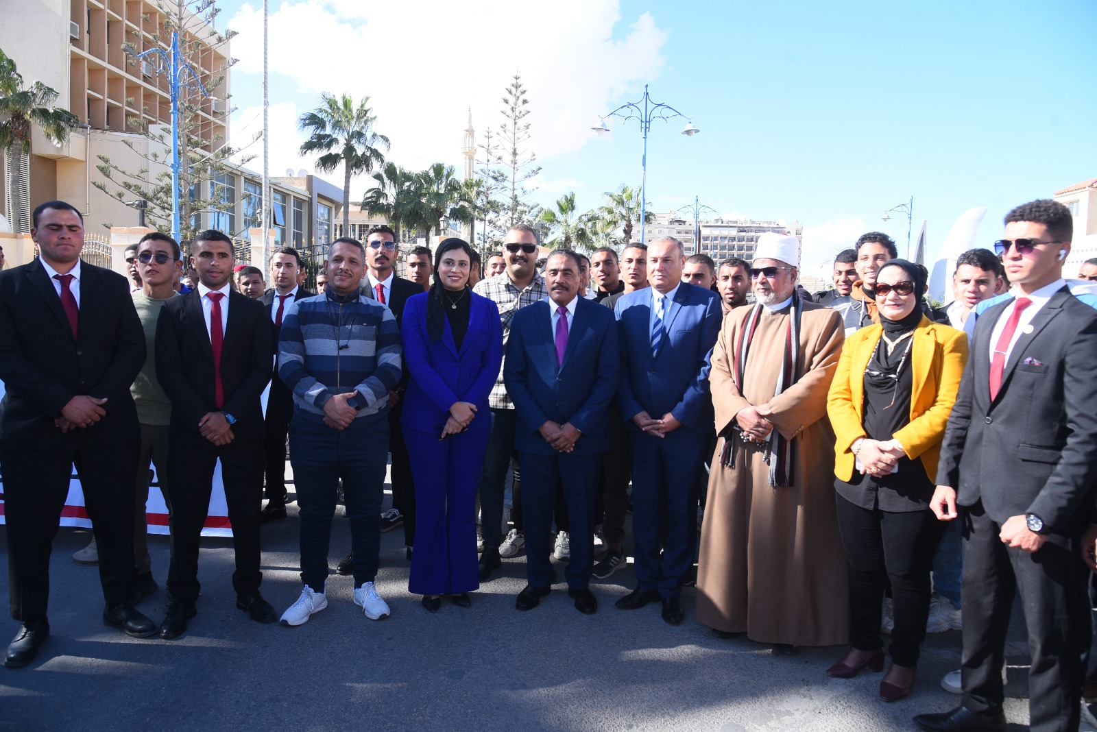 والأستاذة نادية فتحى وكيل وزارة التربية والتعليم بمطروح وطلاب التربية والتعليم والمعاهد الازهرية و جامعة مطروح بمشاركة طلاب الكشافة والجوالة .