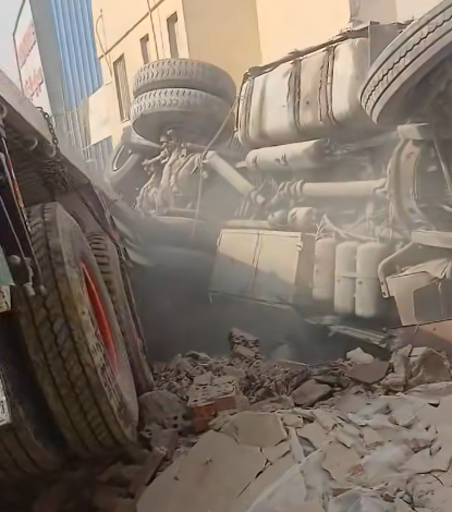 مما أدى إلى انقلابها واصطدامها بسور خاص بأحد مصانع الرخام والجرانيت