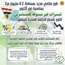بمناسبة انتصارات أكتوبر طرح قطع أراضي للمستثمرين قبل يومين من إغلاق باب التقديم قبل يومين من إغلاق باب التقديم،