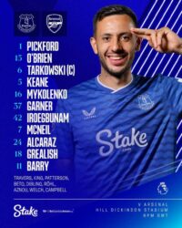 بينما قام ديڤيد مويس المدير الفني لايفرتون بإعلان التشكيلة الأساسية لفريقه وجاءت كالتالي:-