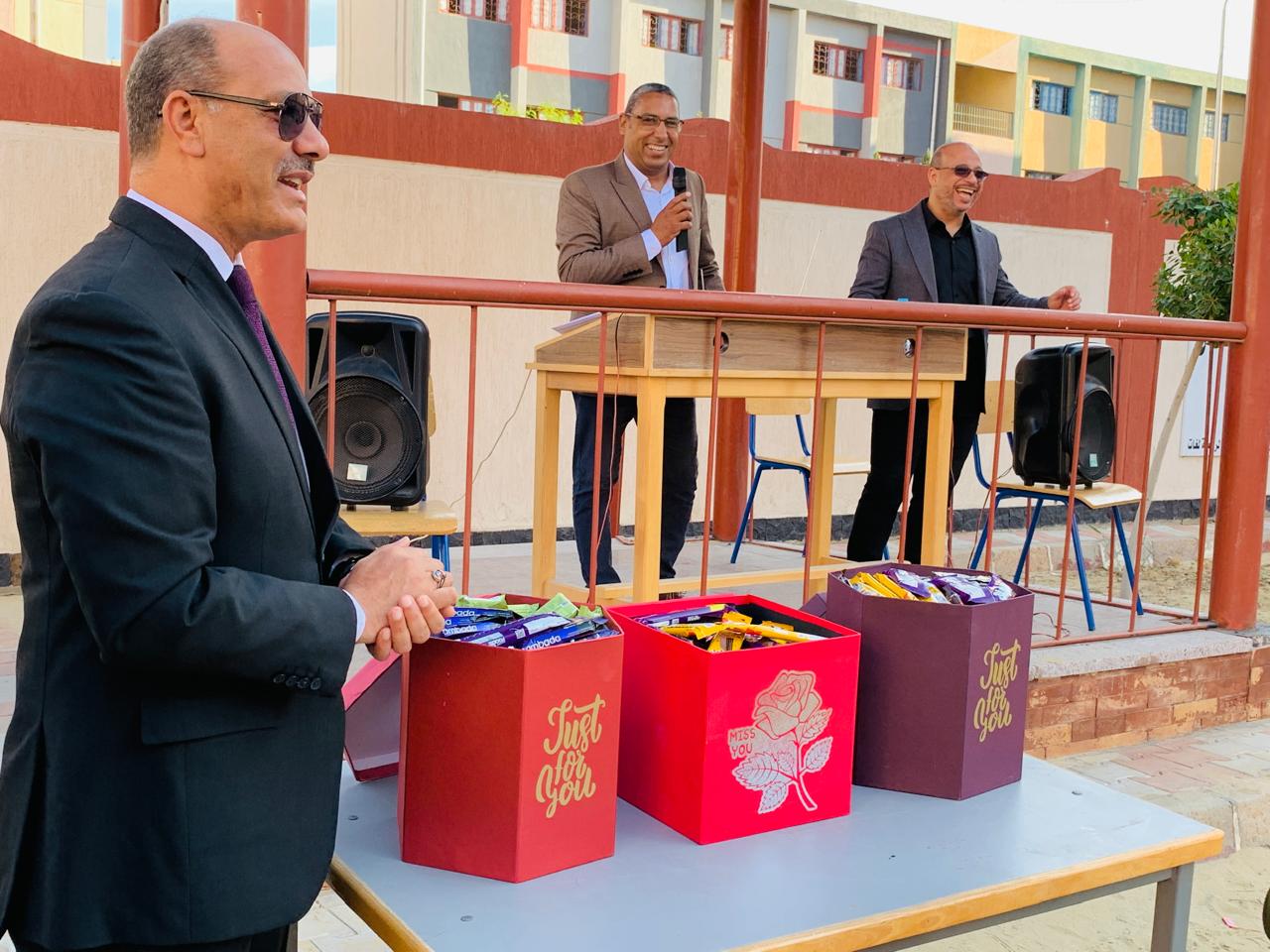 وتم استقبال أبنائنا الطلاب بطريقة مناسبة بالبالونات والحلويات وتشغيل الأغنيات الوطنية ورفع علم مصر وتسليم الكتب الدراسية .