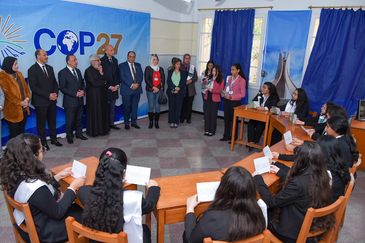 شهد اللواء  محمد الشريف محافظ الإسكندرية يرافقه الدكتور/ عربى أبو زيد وكيل أول وزارة التربية والتعليم بالإسكندرية اليوم، نموذج محاكاة لمؤتمر المناخ cop27