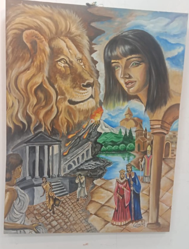 تنوعت لوحات المعرض لتبرز العديد من الأفكار والمشاعر