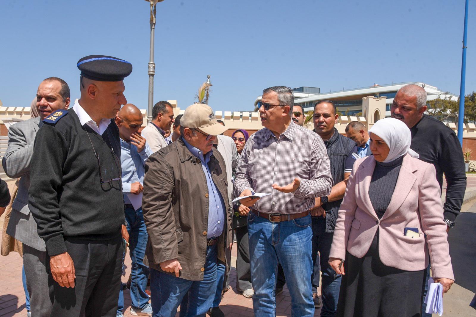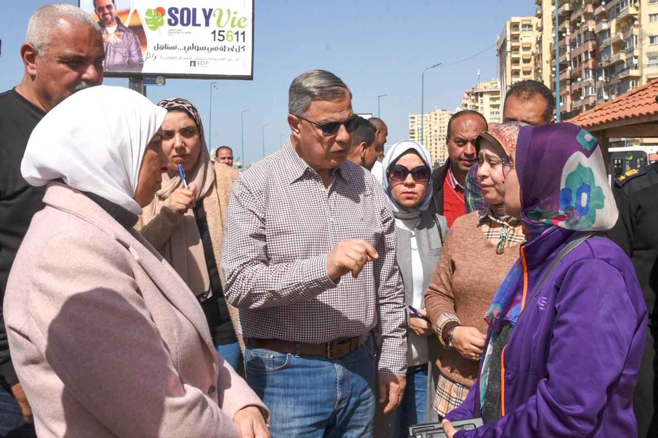 جولة تفقدية موسعة سيرًا على الأقدام، بدأت من منطقة المعمورة وامتدت بطول طريق الكورنيش، بمشاركة كافة الأجهزة التنفيذية والأمنية بالمحافظة.