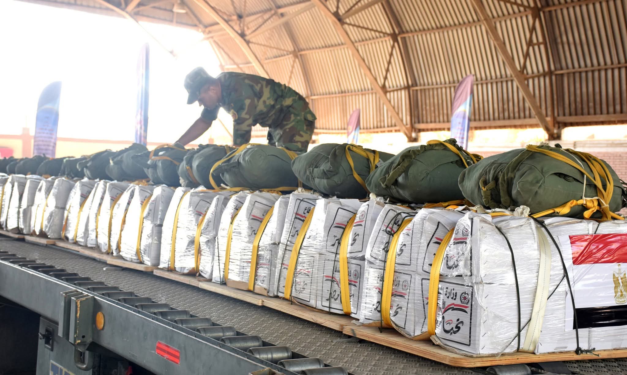 على المناطق التى يصعب الوصول إليها برًا بقطاع غ_زة، وذلك بالتزامن مع إستمرار المساعى المصرية لتدفق الشاحنات المحملة بالمساعدات للقطاع برًا.