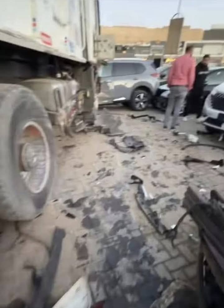 حيث اصطدمت سيارة نقل “تريلا” بمعرض سيارات، ما أسفر عن إصابة شخصين وتحطم عدد كبير من السيارات داخل المعرض.