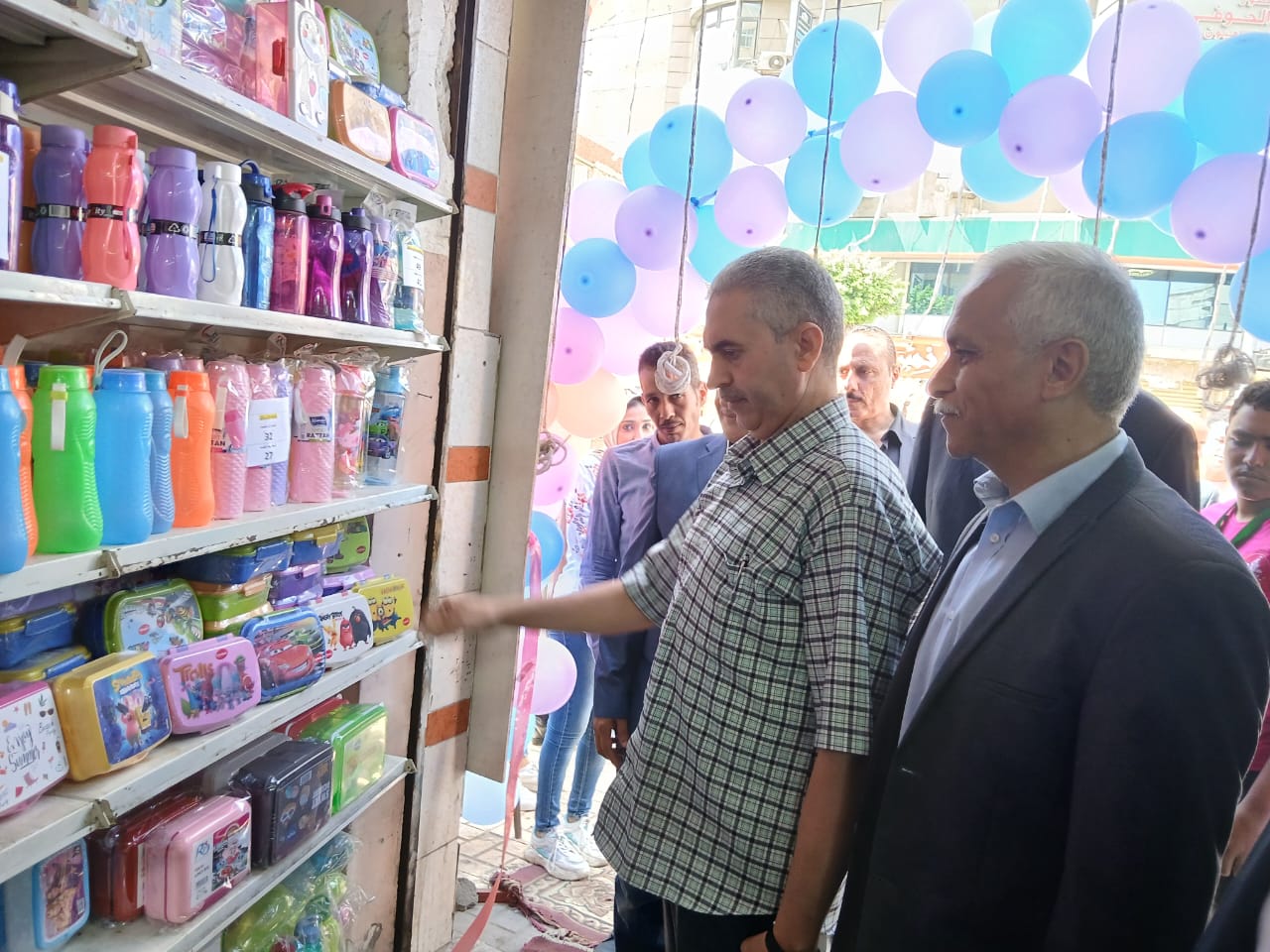 حيث تفقد السيد وكيل الوزارة و مرافقيه أجنحة المعرض الذى يضم جميع مستلزمات الدراسة للطلاب و المدرسين من كشاكيل و كراسات و أدوات مدرسية و شنط و أحذية و زى رياضى بأسعار تنافسية تقل عن مثيلتها بالأسواق بنسب تتراوح من ٢٠ % إلى ٣٠ %