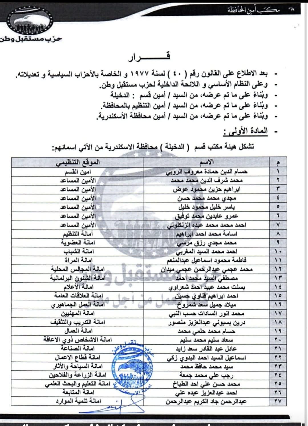 الاسكندريه لحزب مستقبل وطن عام ٢٠٢١/٢٠٢٢/٢٠٢٣