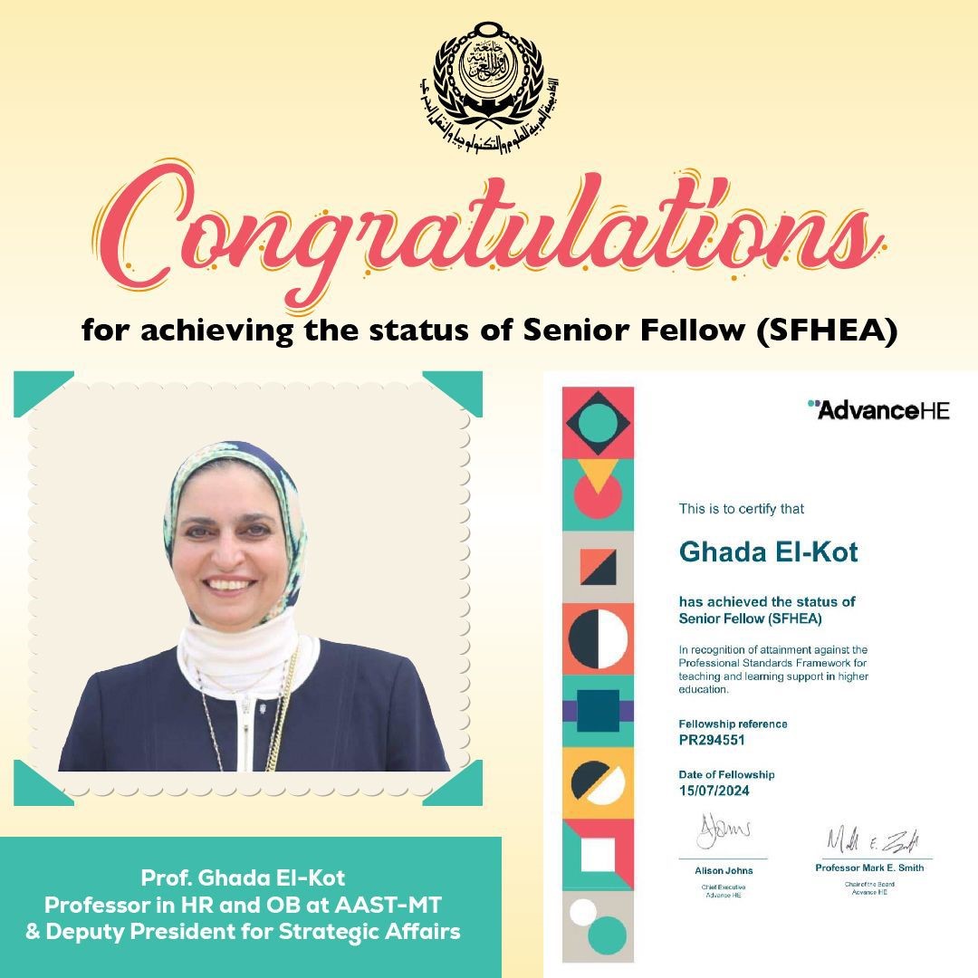 وحصل على درجة الزمالة البريطانية العليا كل من الأستاذ الدكتور/ غادة القط – أستاذ الموارد البشرية والسلوك التنظيمى بكلية الإدارة والتكنولوجيا بالإسكندرية ومساعد رئيس الأكاديمية للتخطيط الإستراتيجى،