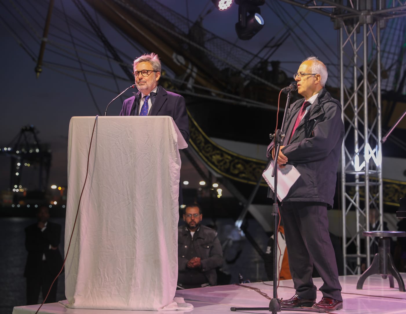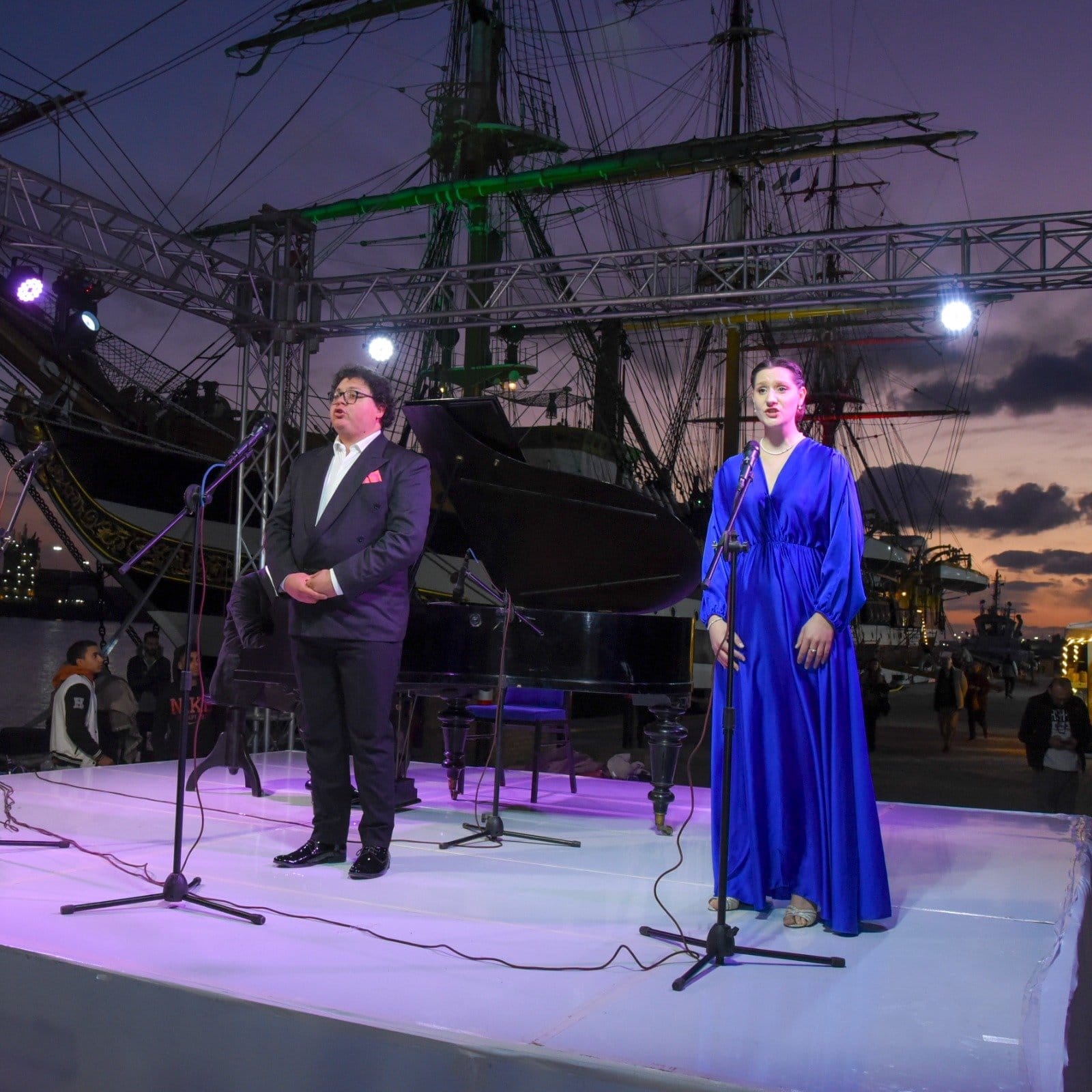 حفلاً أوبرالياً عالميا على رصيف محطة الركاب في إطار الإحتفالية المنظمة مع الجانب الإيطالي بمناسبة رسو السفينة الشراعية الحربية الإيطالية “أماريجو فيسبوتشي” بالميناء خلال الفترة من 12-18/2/2025 والمصنفة كأجمل سفينة شراعية في العالم.